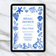 Seashells Frame Bridal Shower Blue Beach CUSTOM QR Invitation