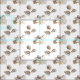 Repeating pattern of groups of seashells and starfish on a white fabric background - great for home decor or fun summer wear.
