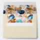 Make a splash with these envelopes which are perfect for pairing with invitations to your under the sea themed quinceanera or beach themed weddings and parties. These sand colored envelopes have a seashell illustration on the front, your name and address in elegant brown lettering on the back flap and a bold and vibrant pattern of seashells on the inside.