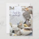 Thank you seashells flat card with custom text on the front. This pretty card with an image of tropical beach shells on the front is blank on reverse for hand-writing a personal note. Sample text is for a "thank you" note, but is easily changed for any occasion or to just say "hi". The back of the card has a sea water and beach sand background. Choose any size where the wording and images fit.