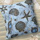 Seashells Starfish Watercolor Blue ID782 Throw Pillow
