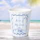 Seashells blue handrawn wavy border beach baby shower monogrammed paper cups template, baby shower personalized paper cups, sketch beach baby shower printed paper cups , summer baby shower personalized table decor, seashells on the beach baby shower paper cups, handwriting blue stripes baby shower personalized paper cups