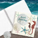 Sea life spiral bound square notebook. Customize with text (name, or title) in blue on the front. Sand dollars, starfish and sea horses cover the ecru front page. The design carries onto the back as well. Inside, choose from a number of page styles, from sketching blank pages to lined, graph paper, recipes and others.