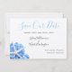 Save the date cards with blue hydrangea flowers and white starfish design.
