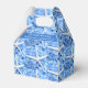Seaside Garden wedding thank you favor box with text. White starfish and blue flowers design with two lines of text on front to thank wedding guests, or shower guests. The elegant beach-themed design contains realistic images of flowers and a sea star. The photography makes a pattern to cover the box which folds to make a handle.