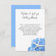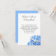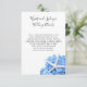 Seaside Garden blue hydrangea wedding details enclosure cards. Size 4x5 shown, or choose a smaller size to fit inside an invitation envelope. Customize text in two places with script at the top and printed text in paragraph form. This elegant beach themed design has a big white sea star (starfish) and beautiful blue hydrangea flower at the bottom. Cards are white with black text. Include any information guests will need for a destination event (travel, hotels) or directions to the ceremony and / or reception. Reverse is solid blue.