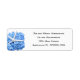 Blue hydrangea and starfish white address labels with printed black text. Add three or four lines of text for the address. A light blue flower with white sea star decorates the edge.