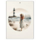 A graceful young woman in a flowing white dress wanders along the sandy shore, her sun hat tilted against the breeze as she gazes toward a striped lighthouse standing strong against the waves. Gentle grasses frame the foreground while seabirds and a sailboat drift across the horizon, adding a sense of calm movement to the coastal landscape. The soft watercolor style blends romance and serenity, creating a timeless cottagecore-inspired seaside scene that feels both nostalgic and dreamlike. AI generated artwork.