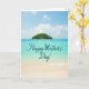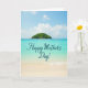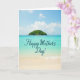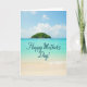 This design shows a serene beach scene with a narrow band of sunlit sand along the bottom edge, where a thin, foamy wave curls back into the sea like a gentle touch between close companions ❤️. The water fills most of the view, shifting from pale aqua near the shore to richer turquoise farther out, with light ripples that feel calm and unhurried. Centered over the ocean is the message “Happy Mother’s Day!” in smooth, flowing lettering, set in a light tone that stands out against the blues. The sky above is a soft blue with a few scattered, cottony clouds, keeping the scene airy and open. Near the horizon, a small green island rises with dense foliage, adding a cozy, sheltered feel as if it’s watching over the water. Off to the side in the distance, a tiny sailboat silhouette and a smaller craft drift quietly, suggesting a peaceful day shared in spirit 🌼. The words sit across the midsection of the card, while the island and boats remain small and dark against the bright water. The shoreline’s pale sand and the lace-like edge of the retreating wave are visible at the bottom, with the foam tracing a delicate white line.