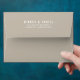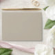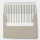 Sandy tan envelopes coordinate with our Seaside Pastels wedding invitation suite and feature an inside liner of vertical cabana stripes in peach, soft sage green, aqua and tan. Add your return address details to the back flap in white lettering.