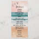 Capture the essence of seaside romance with this elegant beach wedding menu. This menu fits in with the coastal ceremony or destination wedding collection, featuring an ocean theme and accented with pink glitter at the top and bottom. The shimmering pink glitter adds a touch of glamour and sophistication, making it ideal for those who dream of a wedding by the sea. A heartfelt quote on the back adds a personal touch, making this menu stylish and enchanting. Perfect for an oceanfront celebration.