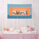 Add a custom touch to your child's birthday party with this adorable personalized banner sign. Banner has a pattern of seaside stars and music notes on colorful blue and orange. Add a custom message, such as happy birthday and your little one's name, age, and four of your favorite photos.