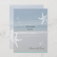 Ocean beach thank you card. Starfish decorate this seaside view to use as a wedding thank you or for any event. The front has a template line for adding names and reverse lets you customize with a personal message, or delete the text to leave it blank. Small, flat cards will come with white envelopes.