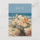 A wedding reception card featuring a coastal theme, adorned with a bride's flower bouquet embellished with exquisite starfish, showcasing a harmonious combination of beige, orange, and blue roses. The design exudes an artistic flair, reminiscent of an oil painting, lending the card a distinct style that is both sophisticated and elegant. This unique and special card design is crafted exclusively for a special bride. The entire set of design cards is accessible in the same design.