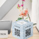 For hotel rooms, restaurant tables, rental properties. Personalize and add your business logo, and space for 4 QR codes. Blue ocean or sky decorated with sea gulls as background, Black text.