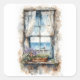 Seaside Window View Watercolor Coastal Scene Square Sticker