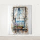 Capture the charm of coastal living with this tranquil watercolor design, featuring a weathered window framed by soft lace curtains that gently part to reveal a peaceful seaside view. A seagull rests quietly on the windowsill railing, gazing out toward calm ocean waves under a serene sky. The window box overflows with blooming lavender, ivy, and pink blossoms, adding a burst of color and life to the composition. Subtle textures in the aged wall and wooden frame enhance the rustic cottage aesthetic, while the soft, fluid brushwork evokes a dreamy, romantic feel. Perfect for those who love cozy beach houses, vintage decor, or serene nature scenes, this artwork brings a quiet coastal atmosphere into any space. Inspired by slow mornings by the sea, this design invites reflection and relaxation. AI generated artwork.