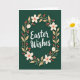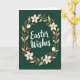 Designed with a deep forest-green background, this card centers a flowing white message that feels like a gentle note between close friends. A soft oval wreath wraps around the words, with long warm-beige leaves leaning inward as if they’re reaching toward each other. Cream five-petaled flowers sit among the leaves, each one marked with a small coral-red center that adds a tender, romantic touch 🌷. Tiny red berries and a few muted teal-green dots are tucked between the stems, like little shared secrets in the greenery 🐰. The text sits right in the middle of the wreath, bright white against the dark backdrop, with plenty of breathing room around it. Subtle shadows under the leaves and flowers create a layered, cut-paper look without feeling heavy. The wreath forms a gentle oval frame, dotted with red berries and cream blooms against the rich green field.