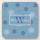 Celebrate the holidays with festive party decor featuring wintery snowflakes on a monogrammed coaster. Great for cocktail parties and seasonal entertaining.