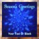 A swarm of blue fractal snowflakes. Text reading "Season's Greetings" appears in glowing blue and white. Add your own additional text.