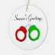 Lightweight, smooth, pure white ornament with nice sheen. Perfect size to be seen from across the room ... and to attract closer inspection! Price was great for ordering enough for the whole family! Clear, bold black design just as requested. Matches the order exactly. Just so nice!