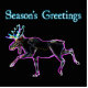 A neon-like depiction of a bull moose on a black background. Text reading, "Season's Greetings" appears in glowing blue and white. Inspired by the Northern Lights.