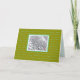 This card features an inset of snowy branches on a background of logan green with an aqua repeat pattern of "Season's Greetings." Inside says, "May your holidays be full of warmth and good cheer." The punchy colors add festiveness to the card.
