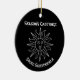 Celebrate the darkest time of year with a nod to one of the most iconic folk horror films ever made—this round black ceramic Christmas ornament pays eerie tribute to The Wicker Man with a design that’s as unsettling as it is unforgettable. On one side, a bright sun symbol glows in golden tones, a cheery yet haunting contrast against the jet-black background, surrounded by the words “Seasons Greetings From Summerisle.” On the reverse, the chilling phrase “Welcome Fool” appears in crisp lettering, a stark and memorable reference that fans of the cult horror classic will instantly recognize. This ornament is perfect for those who appreciate holiday decor with an edge—those who find comfort in the uncanny, warmth in the strange, and joy in the macabre. Whether you're decorating a Christmas tree, a Yule altar, or simply want to add a sinister twist to your seasonal setup, this ornament delivers mystery, mood, and meaning all in one compact, ceramic circle.