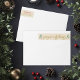 Elegant gold "Season's Greetings" script pairs with delicate green holly branches and red berries on this beautiful wrap-around return address label. A soft beige background brings warmth and timeless holiday charm. Personalize with your family name and address for Christmas card mailings. A graceful finish for every holiday envelope.