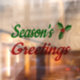 Window cling with season's greetings in 3D green and red text and Christmas holly. Available in several sizes, shapes, and levels of transparency.