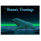 A peaceful moment in the long Arctic night. A Polar Bear rests at the edge of an open area in the pack ice. The Northern Lights glow in the distance; bright stars twinkle overhead. "Season's Greetings" appears in glowing blue and white. Add your own text. Polar bears are endangered. How much longer will scenes like this be able to occur? Please help save Polar Bears from extinction.