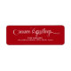 This label features the words season's greetings in a script font written in white and set on a red background.
