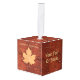 Season's Greetings - Maple Leaf On Birch Bark Cube Ornament