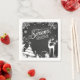 Your festive Christmas or Holiday party will pop just a bit more with these fun, Season's Greetings paper napkins with a modern and trendy black and white faux chalkboard look background with a white deer that has decorated antlers with holly and berries on them. The deer is surrounded by snowflakes, trees, stars, and a wrapped gift box.