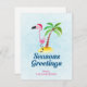 Seasons Greetings Pink Flamingo in Santa Hat Holiday Card