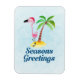 Seasons Greetings Pink Flamingo in Santa Hat Magnet