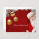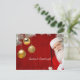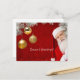 The image depicts Santa peeking around the wall with garland hanging above him and gold ornaments hanging from there for a Christmas card!