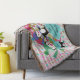 A quality printed throw has its advantages. This is a much finer weave throw than its loopier cousins, and though lighter, it is worth the investment for custom room accessorizing. The back is much prettier than the typical brown, and the fringe on the long sides very vivid, the selvage nicely done. Before photographing, I washed the throw in cold water, delicate, with a thicker woven throw the same size. On tumble dry low, this throw was dry in half the time as the other. This is a very practical quality if you use throws for furniture covers or to wrap up in frequently. The sleekness of the fabric makes it a great layer for accenting or protecting without the feeling of sitting on too much stuff. Perfect for napping or when you feel a light chill coming on. The color printing is beautiful and on this fabric, matched the design and color of my Photoshop image. This is an advantage for blending room fabrics and colors. The fringe on the short sides prints the colors from the design image and therefore varies from the side fringe. I streaked a white fractal line through the plaid pattern to give the illusion of weaving. This printed as crisp as an illusory thread, and put some white in the short side fringe, showing another advantage of print vs loomed- for artistic purposes, line lines, detail, and color integrity can be planned and preserved. My loomed throws have color limitations and more of a needlepoint texture. Print throws reproduce an exact image. The throw felt a little stiff straight out of the package, but this went away in the first delicate wash. Of course I searched the wash water for ink or bleeding and there was none.