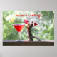 A squirrel wearing a Santa hat sips a cocktail from a straw with "Season's Greetings" written in script above. An original photograph for you squirrel lovers out there!