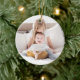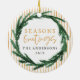 Seasons greetings wreath + stripe Christmas photo Ceramic Ornament