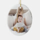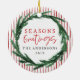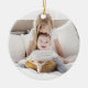 Seasons greetings wreath + stripe Christmas photo Ceramic Ornament