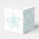 Graphic drawing of starfish / sea stars with swirl wave sea patterned designed thank you square gift box. Modern beach wedding design part of the sea star swirls wedding stationary set. Ideal gift idea as a wedding favor or to place on reception dinner tables or party tables filled with sweets or gifts. Would also make a nice parting commemorative gift. Unique drawing and design by Sarah Trett.