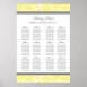 Elegant and contemporary customizable twelve table 96 guest seating seating chart for wedding in modern bright lemon yellow, gray and white classic floral damask vintage pattern. Customize with your guests name to make a unique seating chart for your wedding. Contact us for a custom chart for a different number of guests.