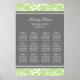 Elegant and contemporary customizable twelve table seating chart for wedding in modern bright apple green, gray and white classic floral damask vintage pattern. Customize with your guests name to make a unique seating chart for your wedding.