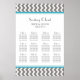 Elegant and contemporary customizable twelve table seating chart for wedding in modern bright turquoise peacock blue, gray and white retro and fun chevron zigzags stripes pattern. Customize with your guests name to make a unique seating chart for your wedding.