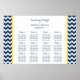 Elegant and contemporary customizable twelve table seating chart for wedding in modern dark navy blue, bright yellow and white fun and retro chevron zigzags stripes pattern. Customize with your guests name to make a unique seating chart for your wedding.