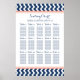 Chic and contemporary customizable fifteen table 150 guest seating seating chart for wedding in modern dark navy blue, coral peach orange pink and white retro chevron zigzags stripes pattern. Customize with your guests name to make a unique seating chart for your wedding. Contact us for a custom chart for a different number of guests.