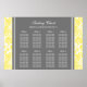 Elegant and contemporary customizable eight table seating chart for wedding in modern bright lemon yellow, gray and white classic floral damask vintage pattern. Customize with your guests name to make a unique seating chart for your wedding. Contact us for a custom chart for a different number of guests.