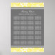 Elegant and contemporary customizable alphabetical seating seating chart for wedding in modern bright lemon yellow, gray and white classic floral damask vintage pattern. Customize with your guests name to make a unique seating chart for your wedding. Contact us for a custom chart for a different number of guests.