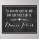 Chalkboard style poster for wedding. "You can find your seat here, but your place is on the dance floor." Item may be customized to 8x10 or 16x20.
